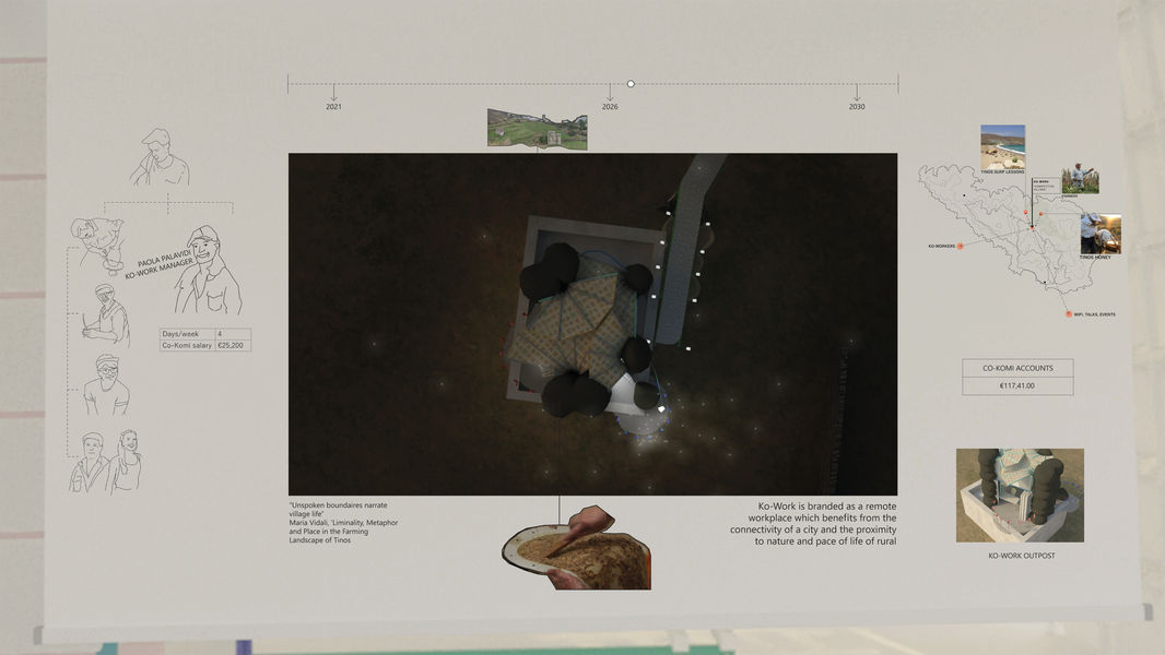 The development plan for Komi - a farming village on the Greek island Tinos - demonstrates how real locals, with their existing skills and assets, can tackle population decline and turn Komi into a competitive and global village. Komi's new identity challenges the role of rural and contributes to the topical issue of environment and waste. By redefining the value of plastic waste it can become a beautiful, local a profitable asset.